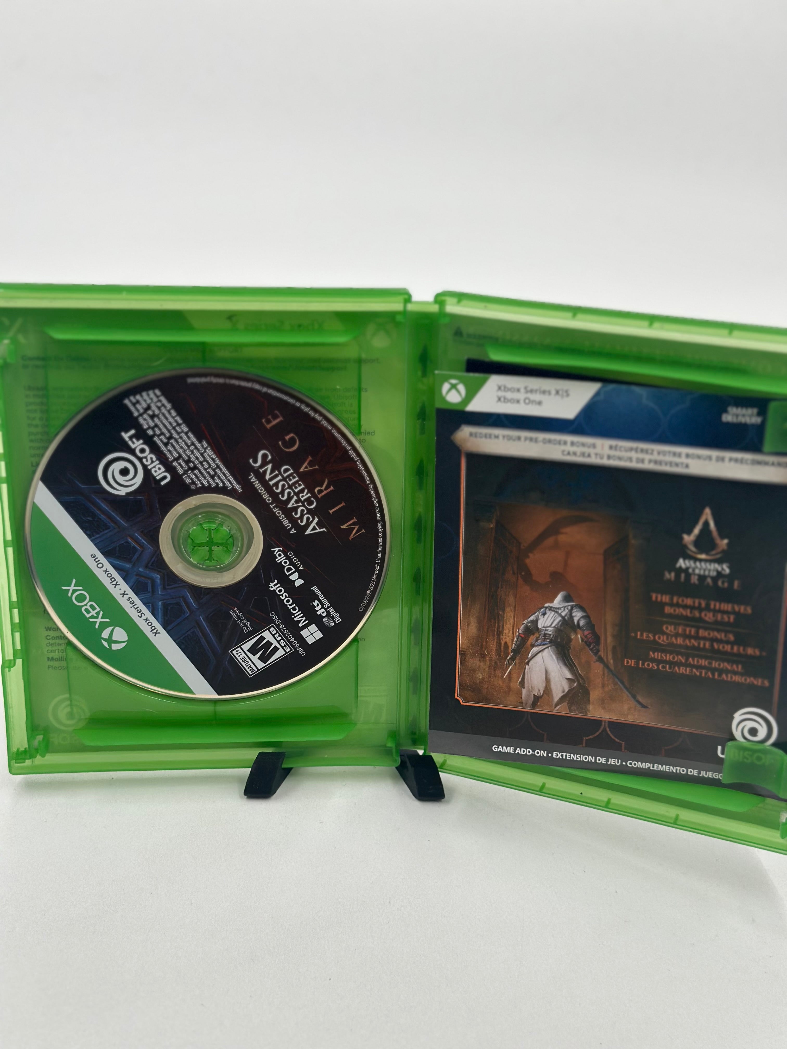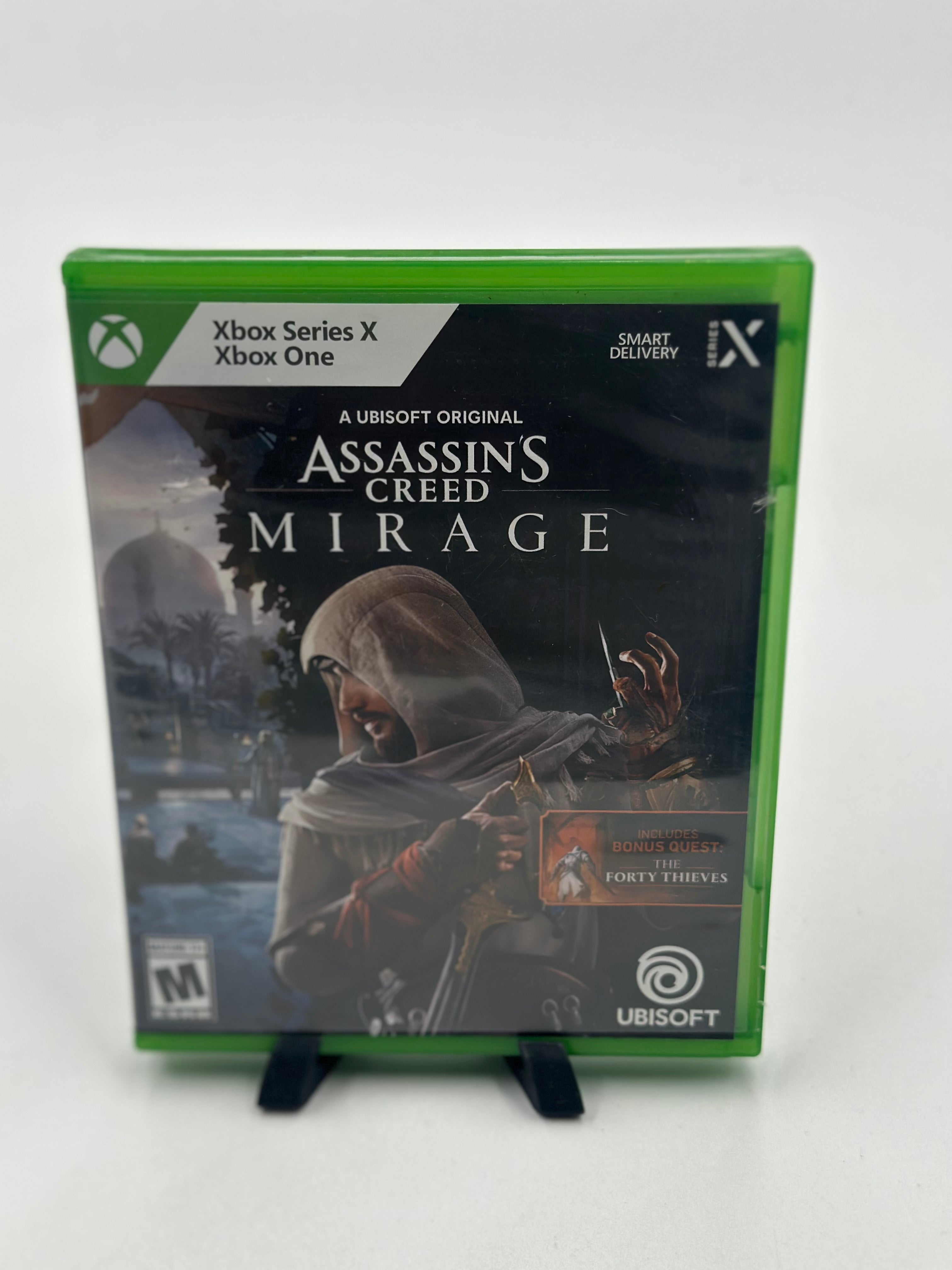 Assassin's Creed Mirage for Xbox Series X is a narrative-driven action-adventure game set in 9th-century Baghdad, focusing on stealth, parkour, and the origin story of Basim Ibn Ishaq. It is a smaller-scale homage to the original series, featuring dense, reactive urban environments and visceral assassinations.
