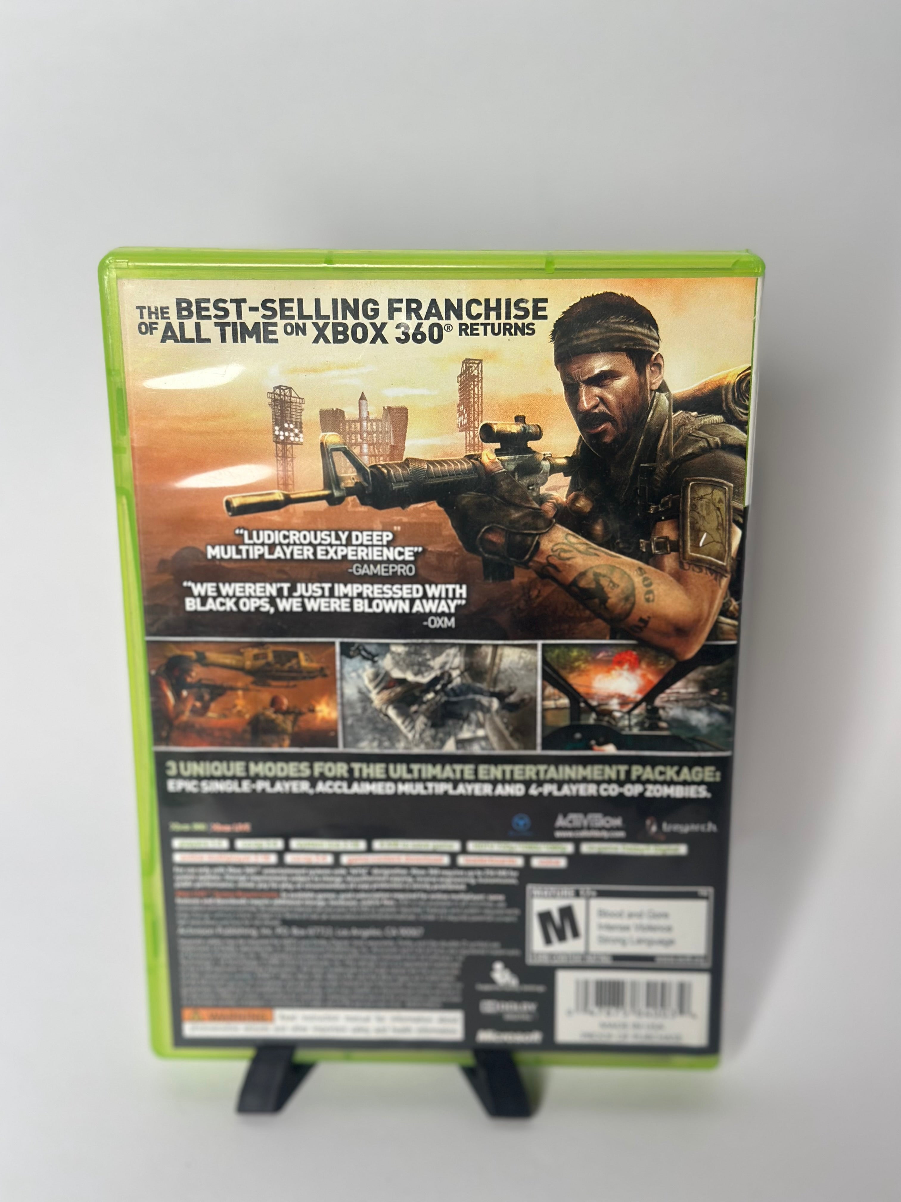 Call of Duty: Black Ops for the Xbox 360 is a first-person shooter where players control an elite special forces operative in covert, deniable operations during the Cold War. The game features a story-driven campaign, traditional multiplayer gameplay, and a popular Zombies mode. It includes access to Cold War-era weaponry and vehicles and offers both single-player and Co-Op experiences.