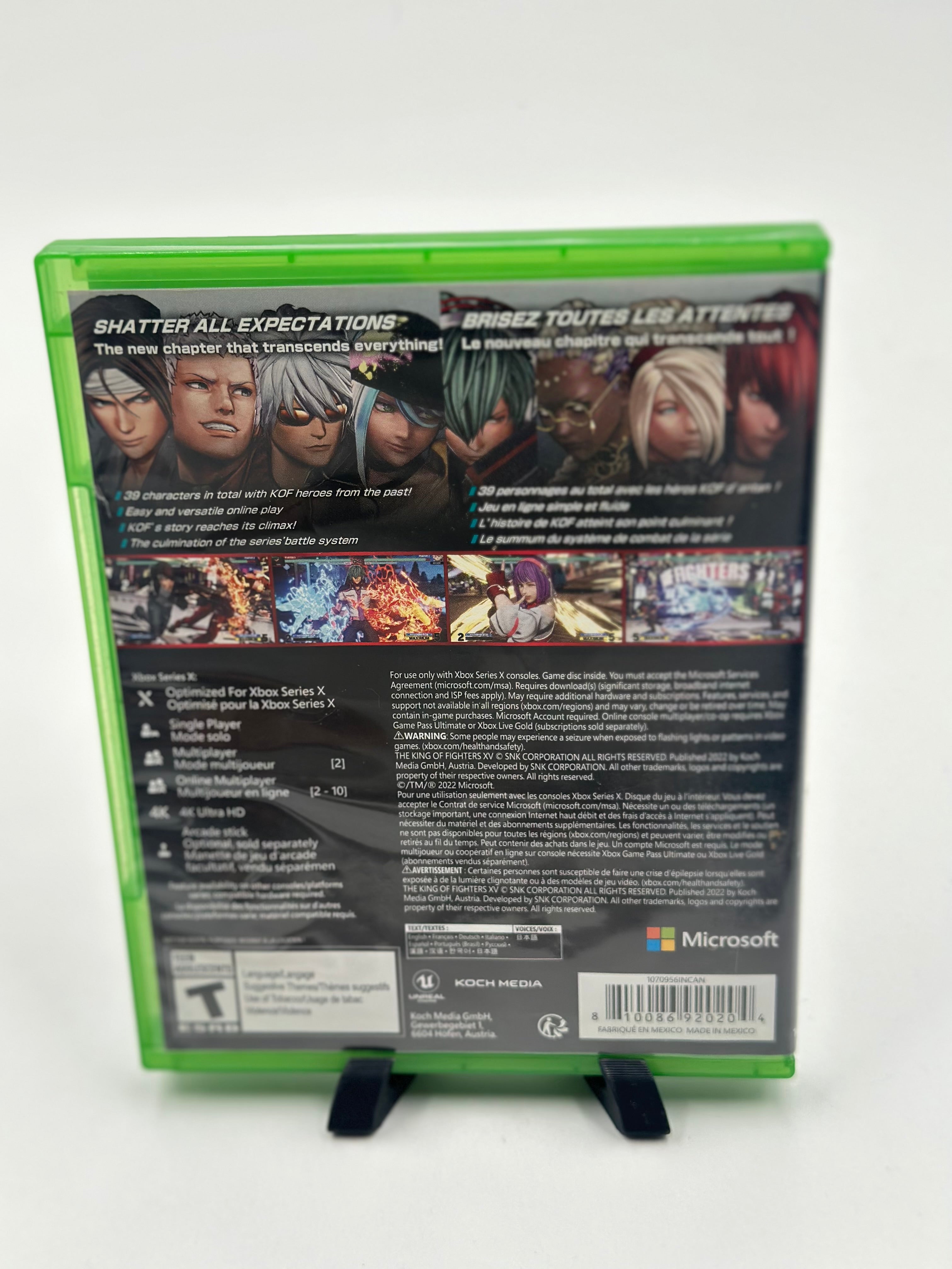 The King of Fighters XV on Xbox Series X is a high-speed 3v3 fighting game featuring 39+ characters, enhanced 3D graphics, and rollback netcode for smooth online play. It continues the series' saga with a focus on polished mechanics like the "Shatter Strike" system and "Max Mode". The game supports 4K resolution, 60 frames per second, and offers a robust online experience including Ranked, Casual, and Room matches.