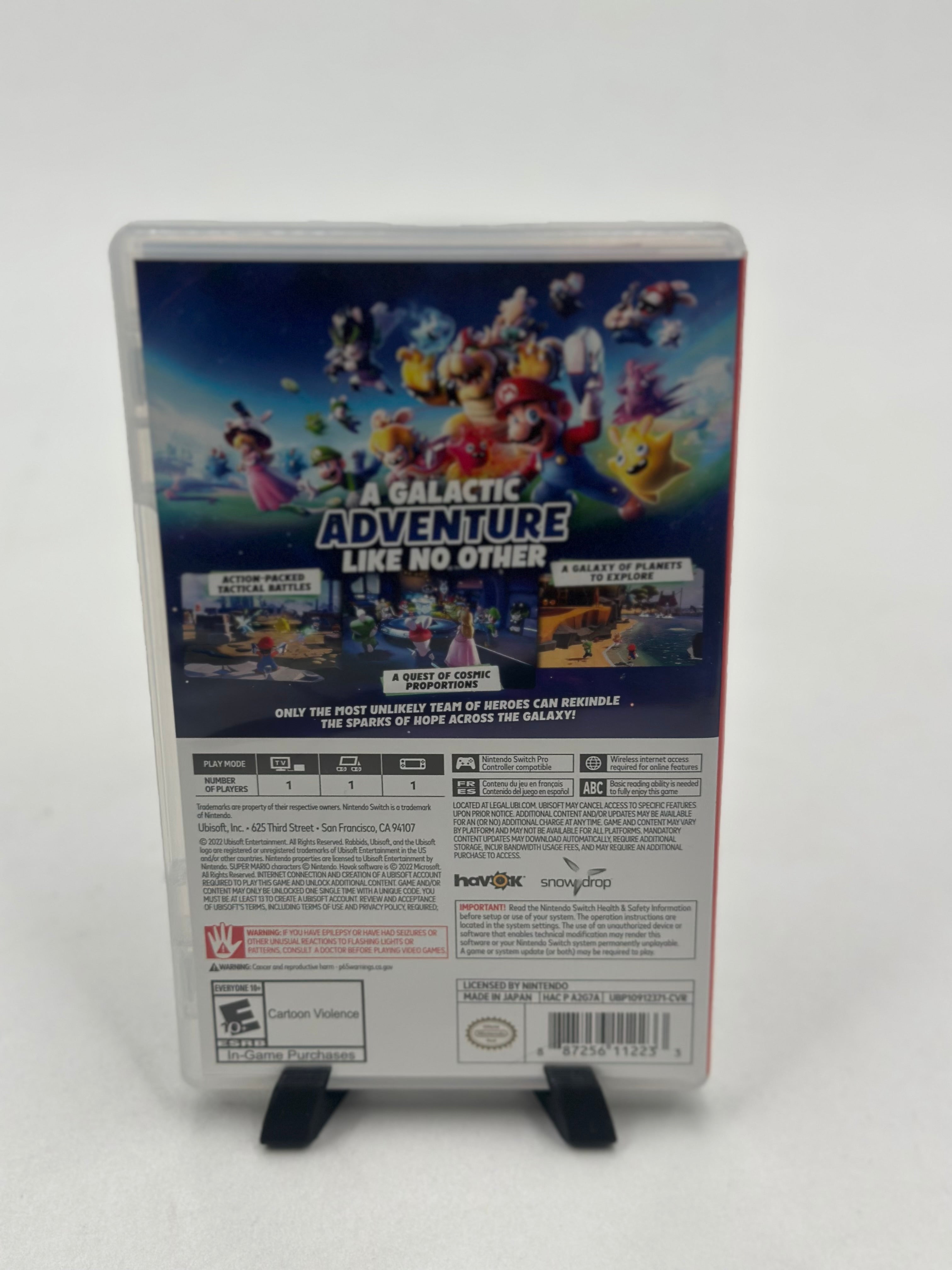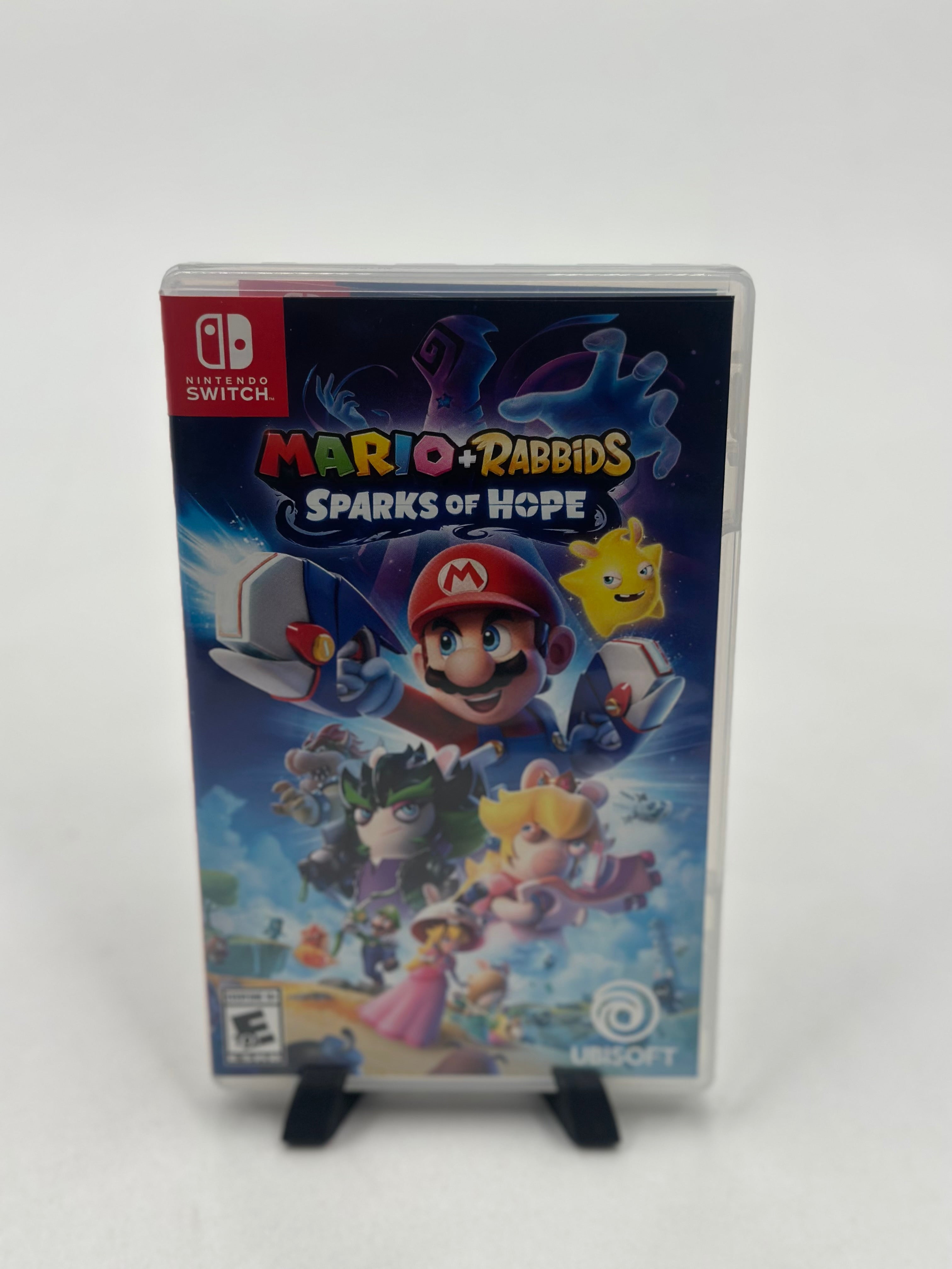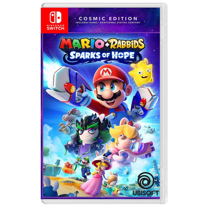 Mario + Rabbids Sparks of Hope is a turn-based tactical action-adventure game for Nintendo Switch (released Oct 20, 2022) where Mario, his friends, and Rabbid counterparts travel the galaxy to save Sparks—creatures formed by merging Lumas and Rabbids—from the dark entity Cursa. The game features a redesigned, free-movement combat system and expanded,explorable, planet-based worlds.
