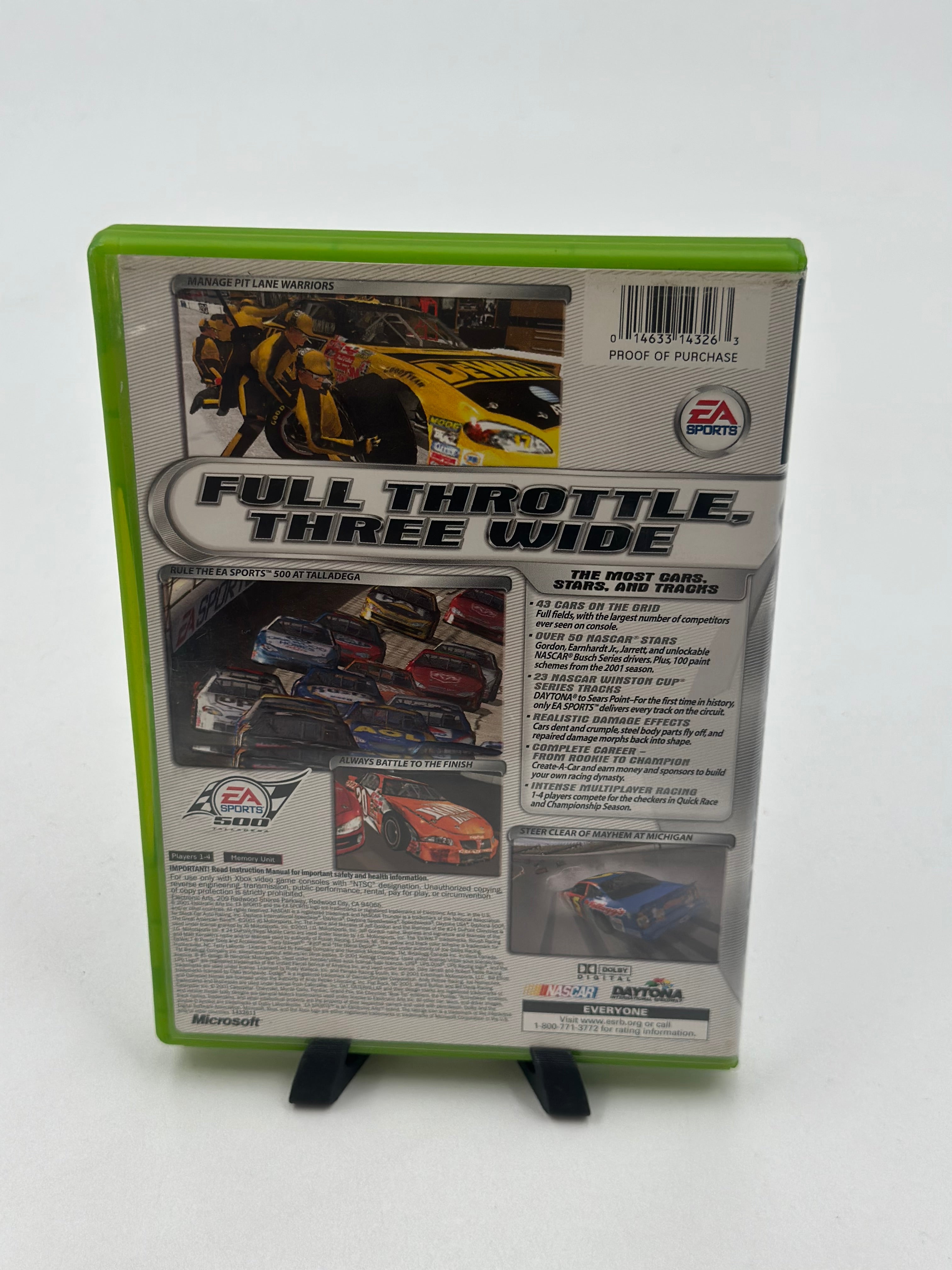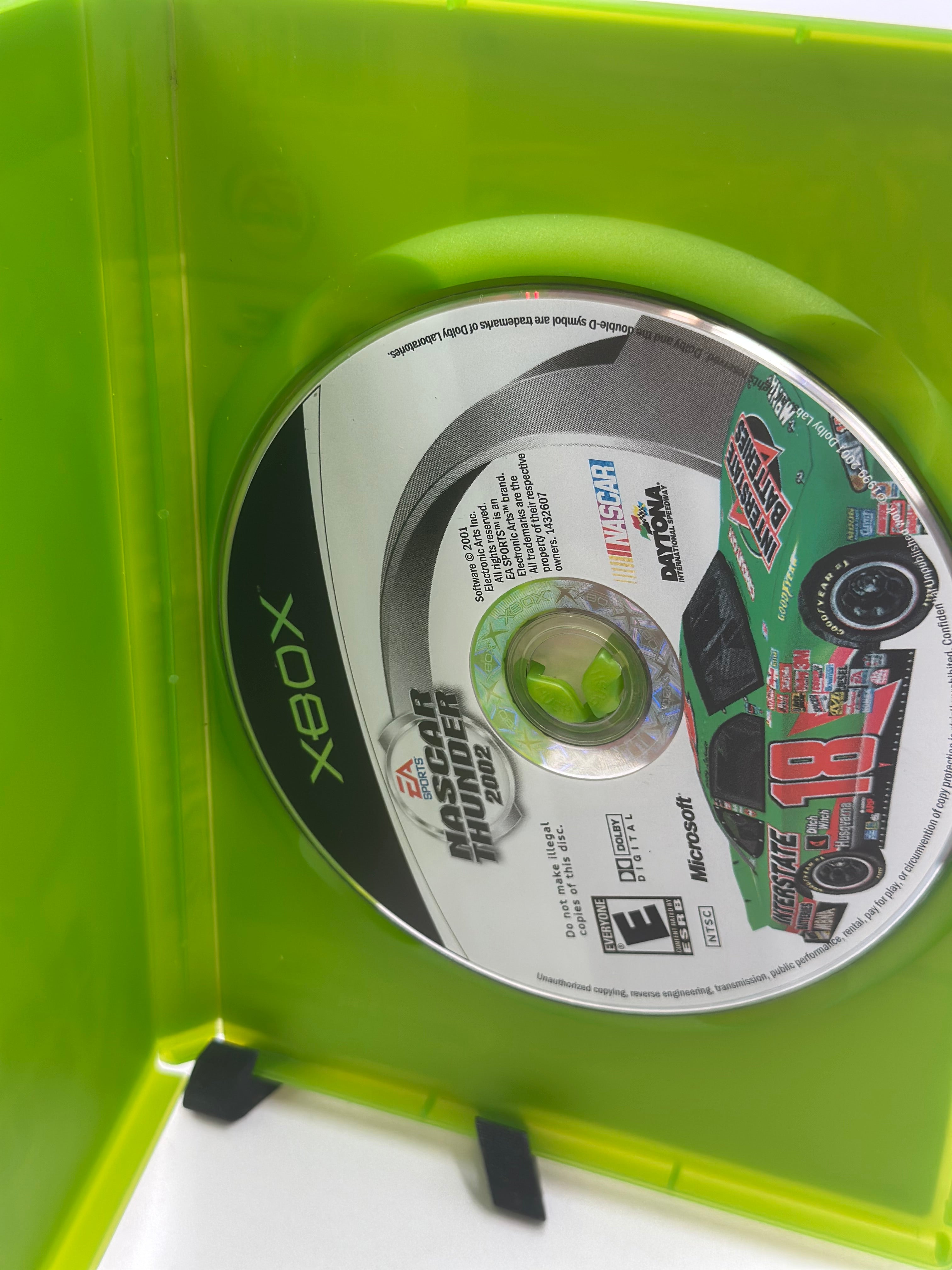 NASCAR Thunder 2002 for Xbox, developed by EA Tiburon, is a 2001 racing simulator featuring over 60 drivers, all 23 NASCAR tracks, and an in-depth career mode with car upgrades, damage effects, and optional driving aids. It is notable as the first NASCAR game on the Xbox console.