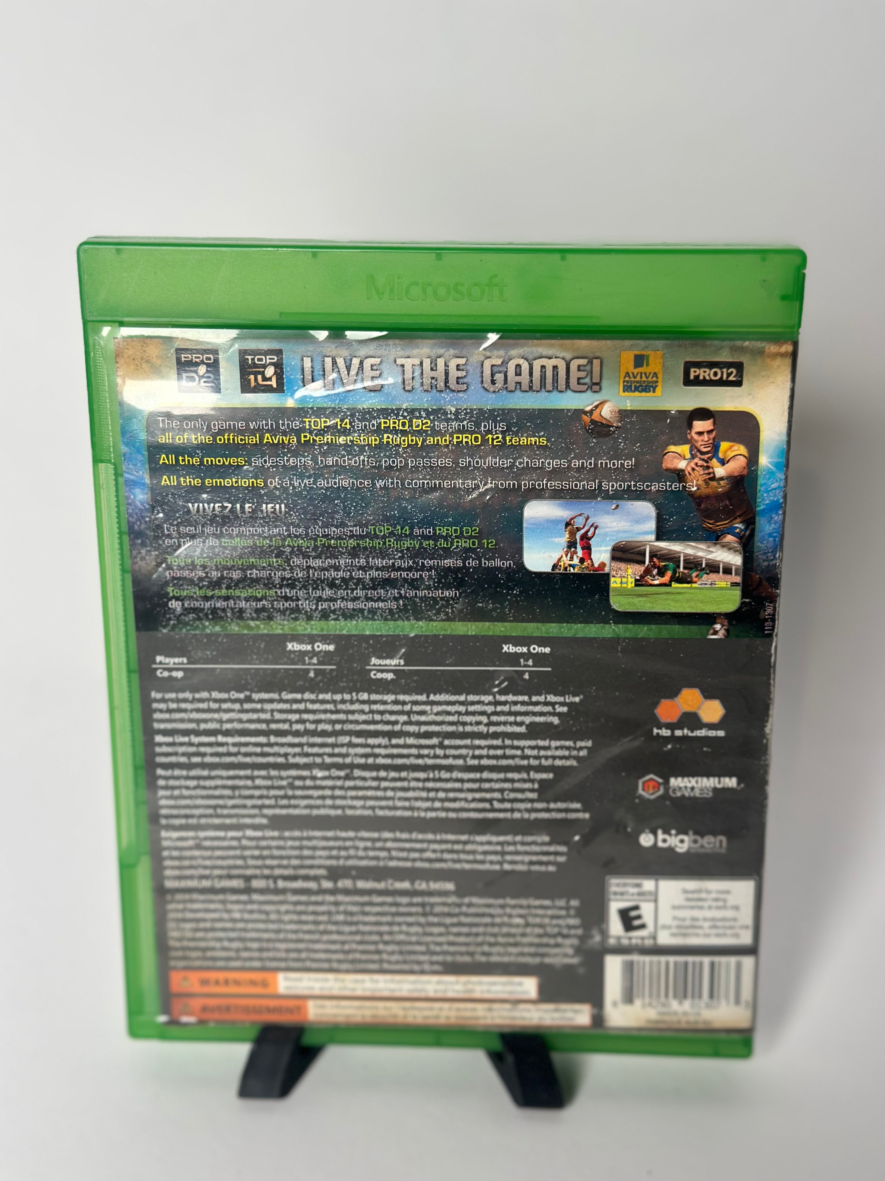 Rugby 15 on Xbox One is a sports simulation developed by HB Studios, featuring official teams from major leagues including Top 14, Pro D2, Aviva Premiership, and Pro 12. It boasts next-gen graphics and intuitive controls for scrums and lineouts, though it received mixed reviews for gameplay, AI, and visual quality.