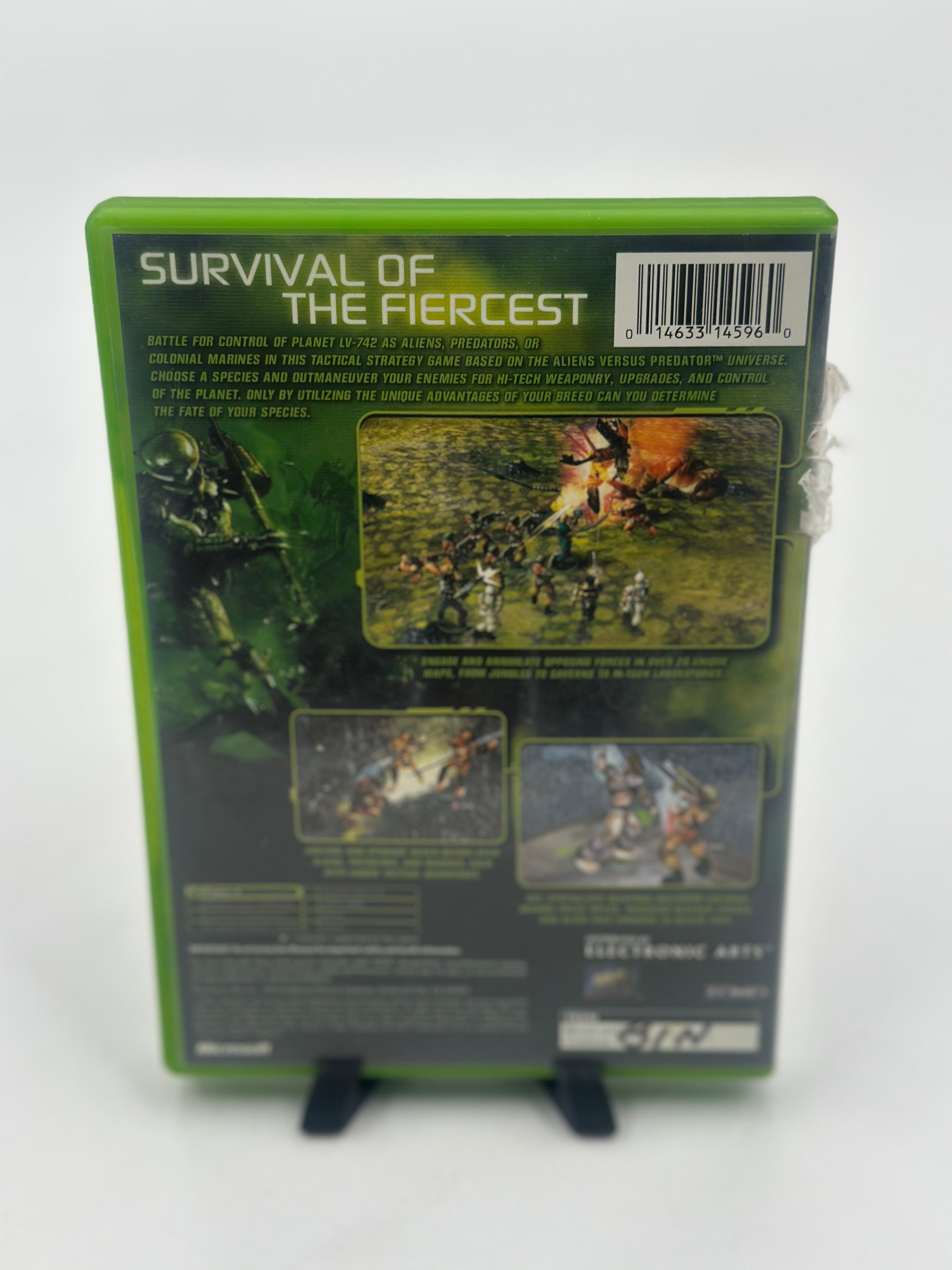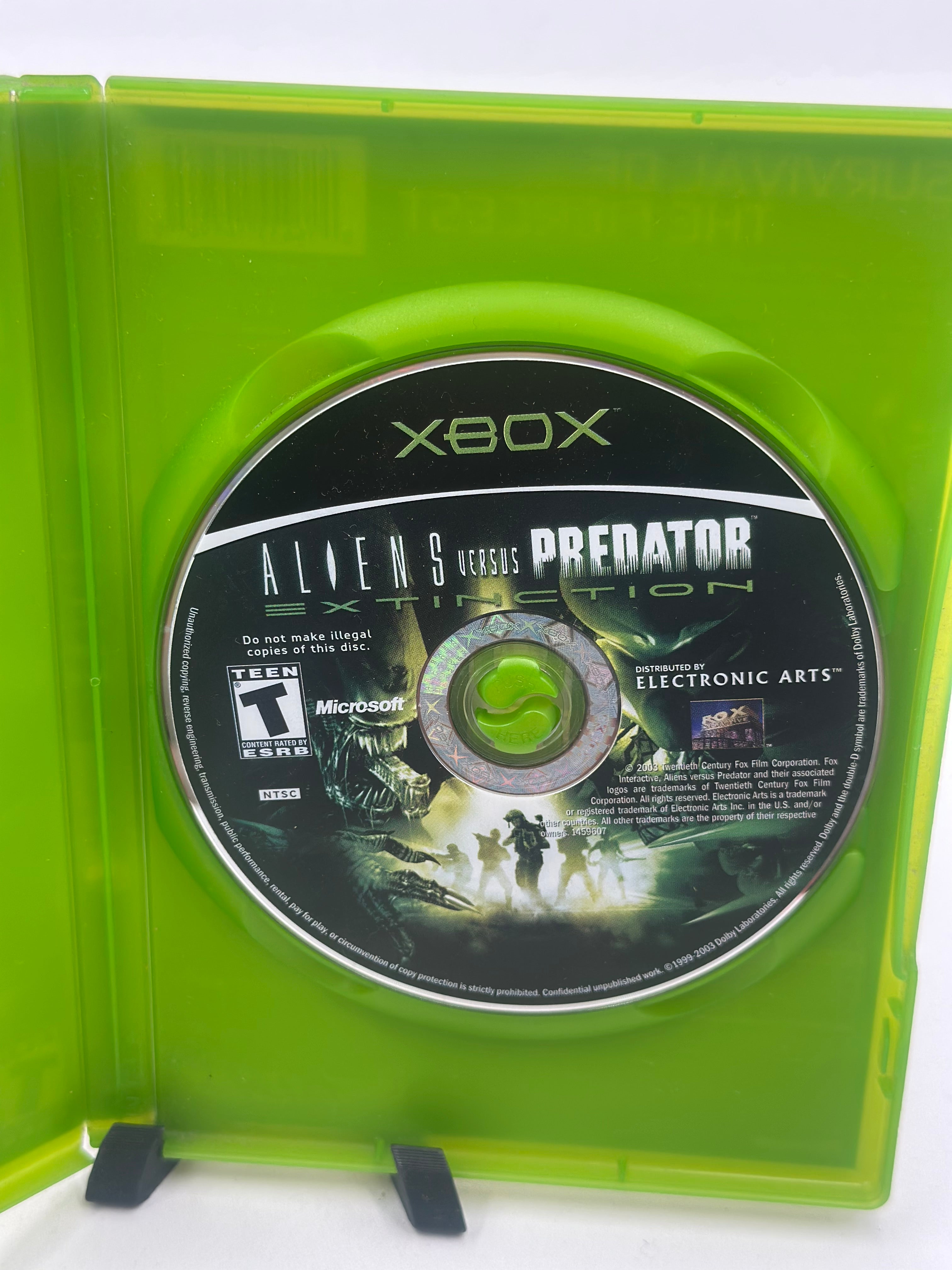 Aliens vs. Predator: Extinction for Xbox (2003) is a real-time strategy (RTS) game where players command Marines, Aliens, or Predators in 21 single-player missions on planet LV-742. Focusing on squad combat over base-building, it features upgradeable units for each species, including facehuggers, Predators, and Exosuits.