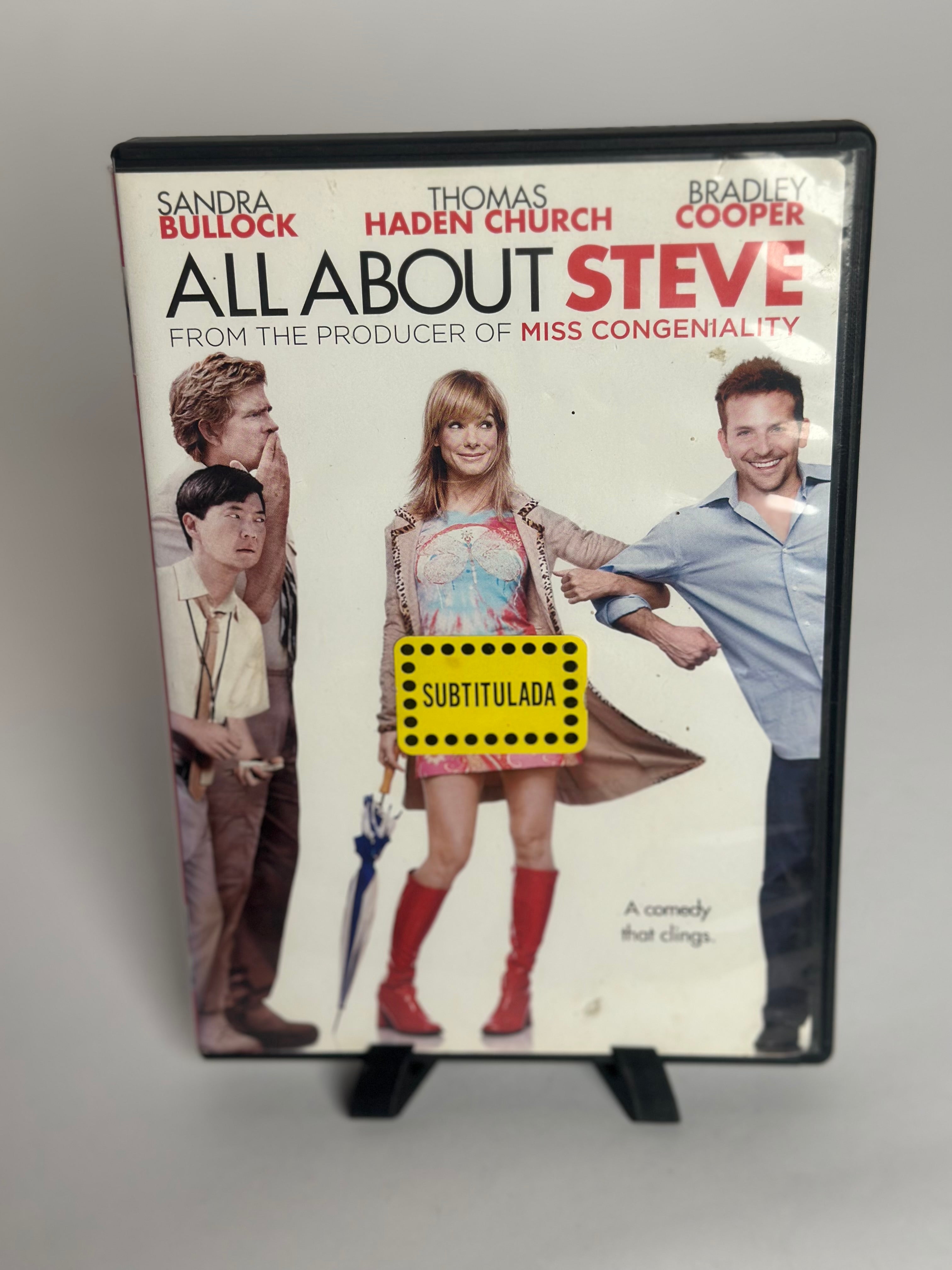 Up for sale is a pre-owned copy of the romantic comedy All About Steve starring Sandra Bullock and Bradley Cooper.