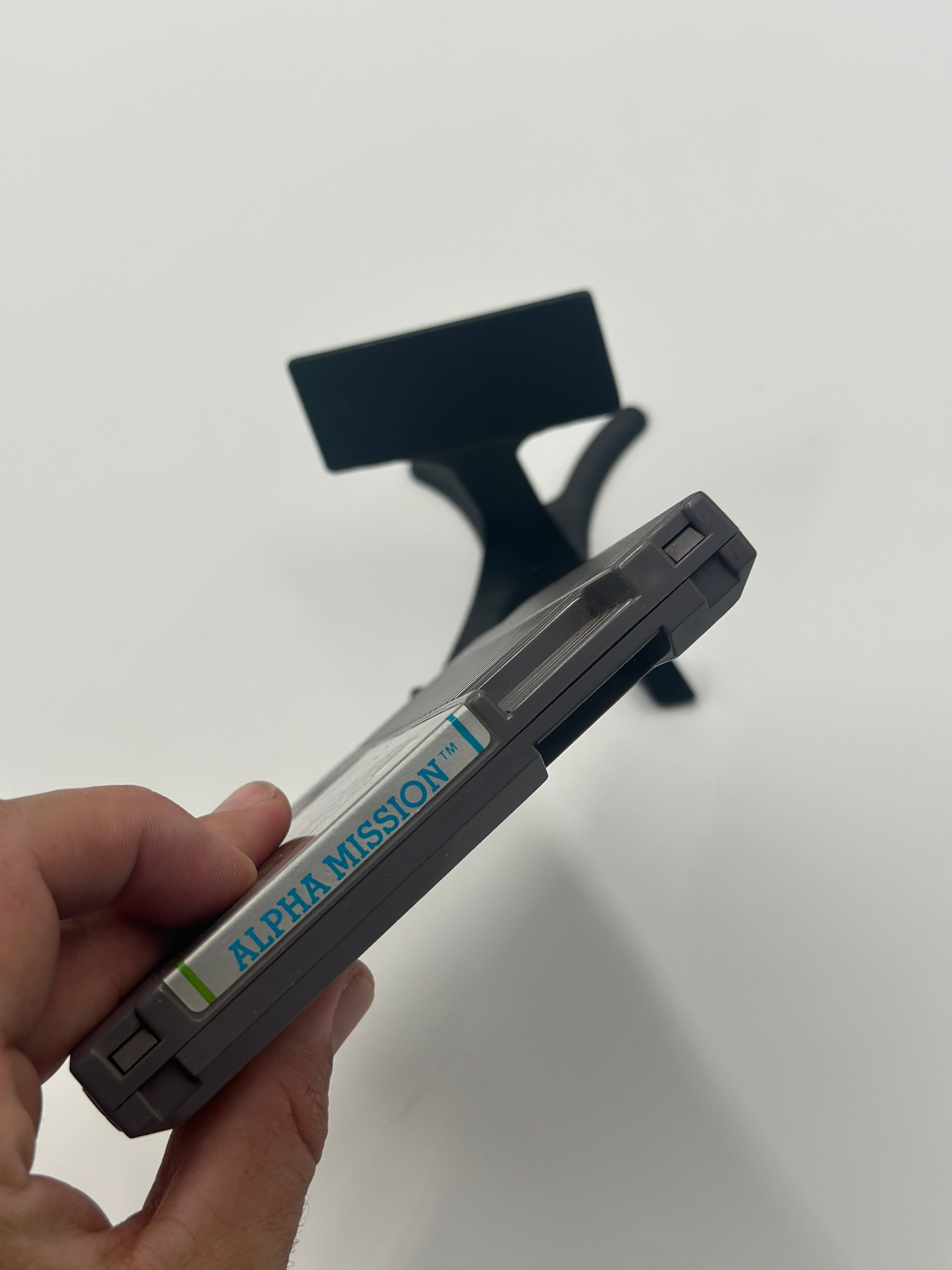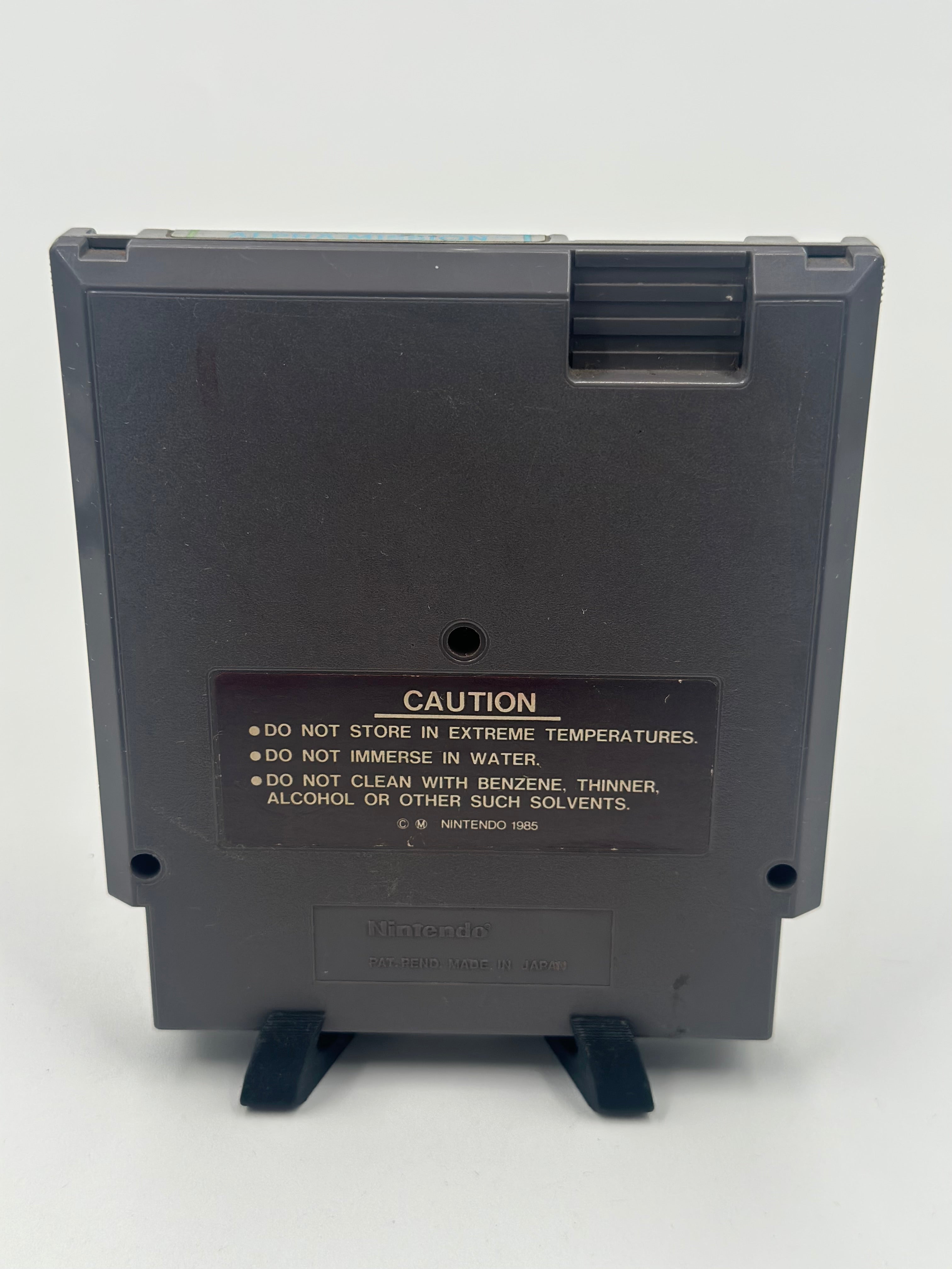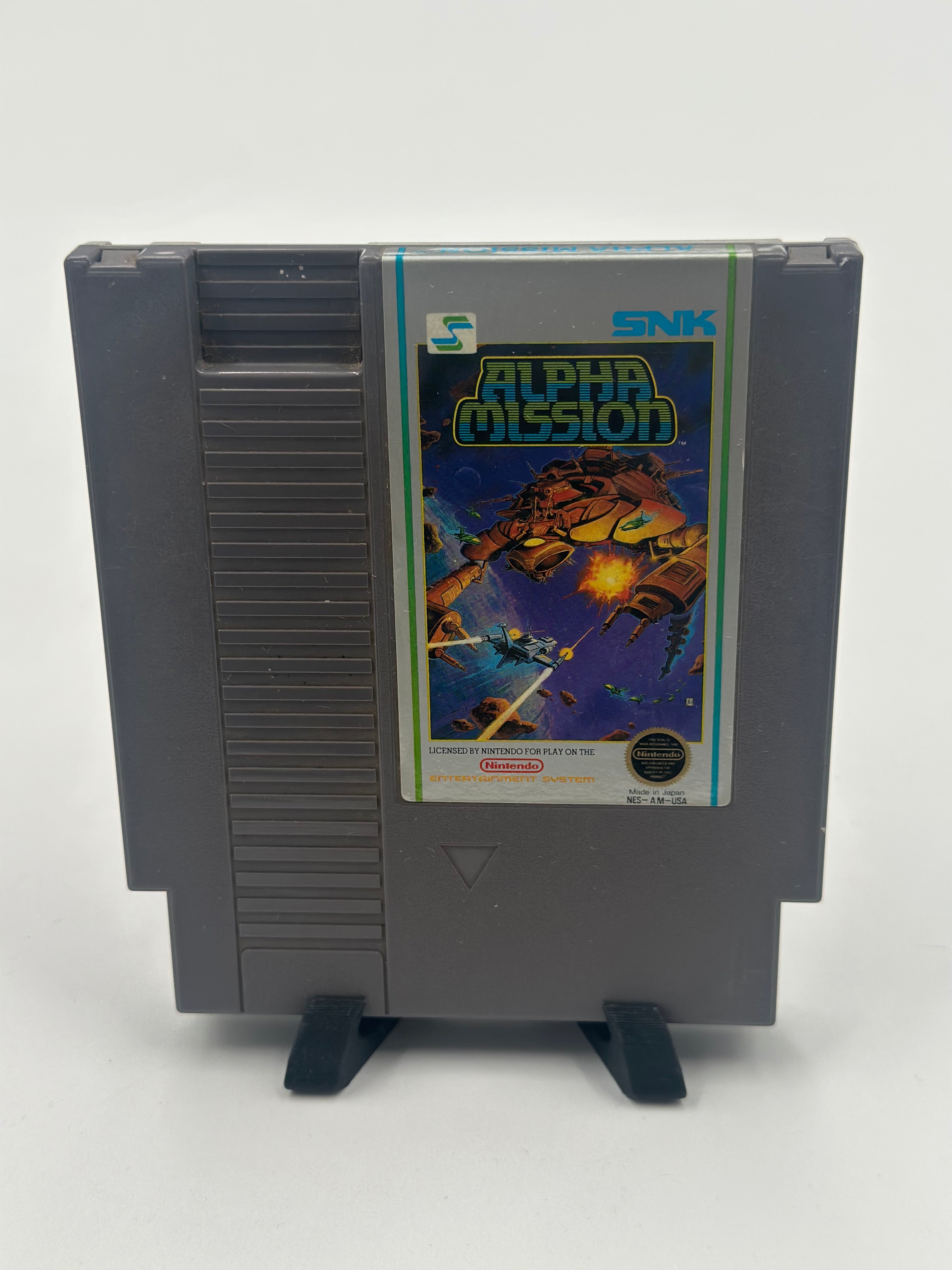 Alpha Mission is a one-player scrolling shooter game, similar to Xevious in its segregation of air-to-air and air-to-ground weapons. Missiles are used to destroy ground enemies, while laser-like weapons are used for aerial opponents.