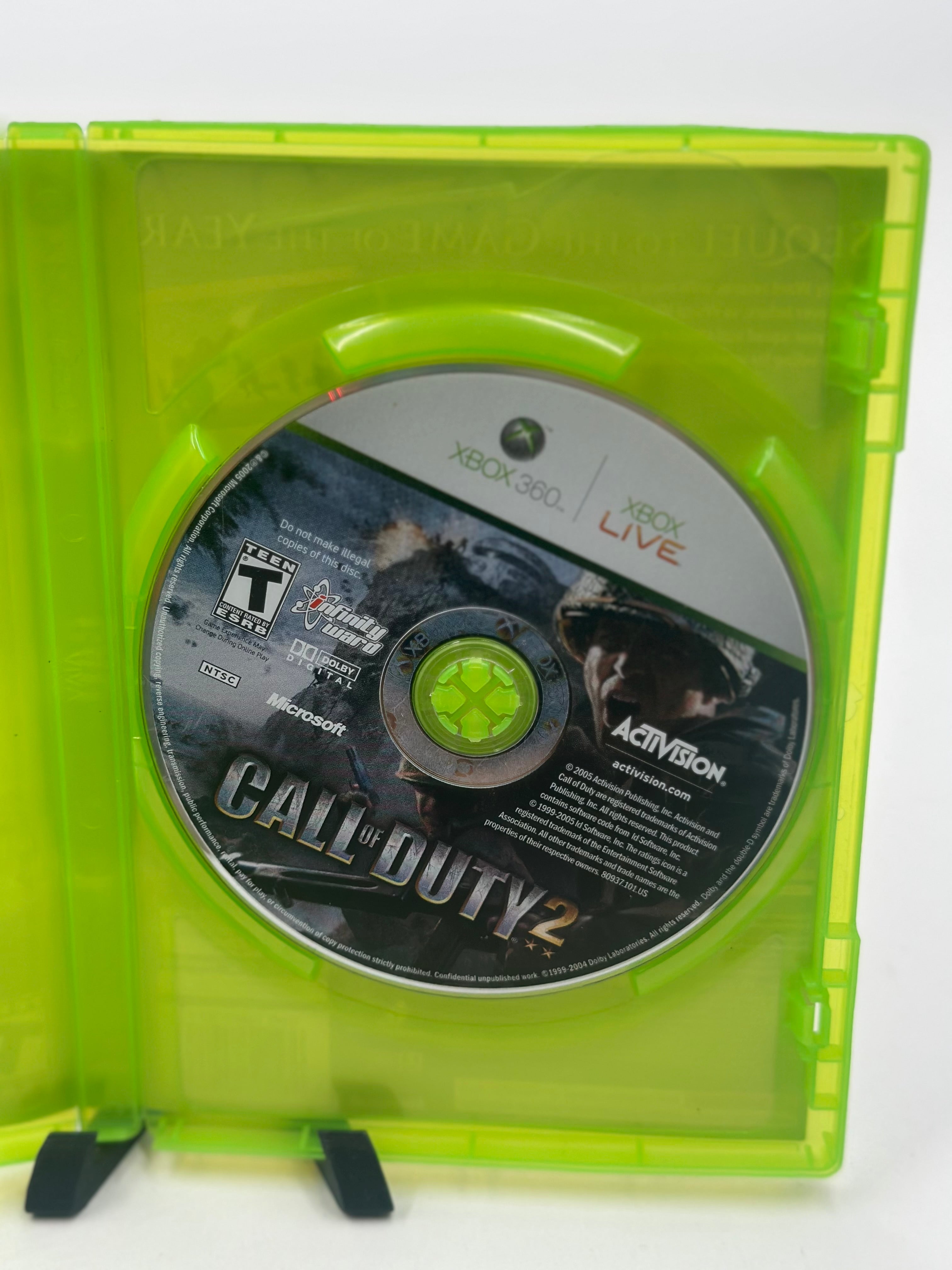 Call of Duty 2 for the Xbox 360 is a World War II first-person shooter known for its immersive single-player campaigns following Allied soldiers and robust online multiplayer modes. The game introduced innovations like regenerating health, a grenade indicator, and realistic weather effects such as sandstorms and blizzards. It was critically acclaimed at the time of its release as a launch title for the console and is considered one of the Xbox 360's best games.
