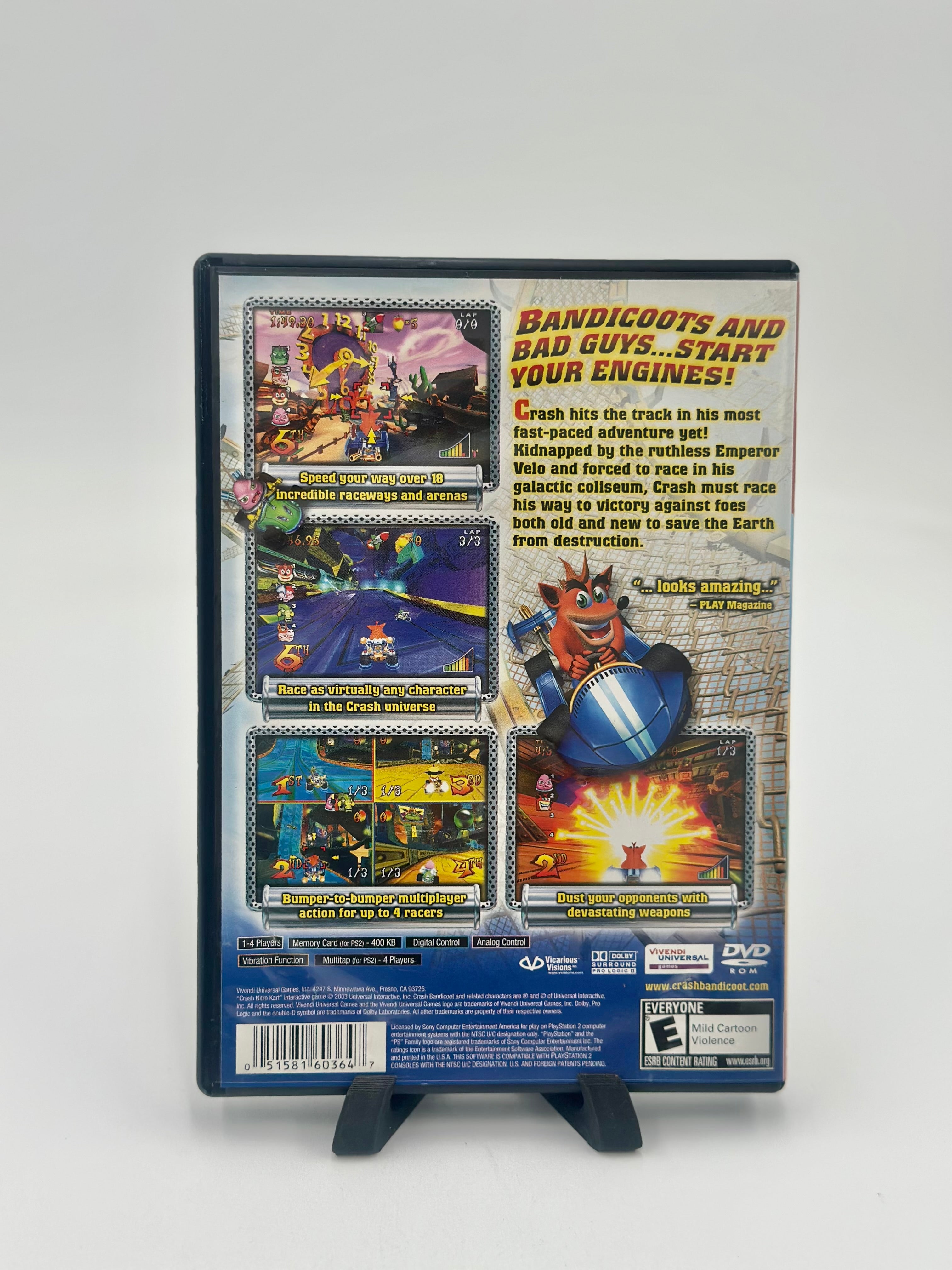 Awesome single player action over Adventure, Arcade, and Time Trials modes offers hours of exciting gameplay. Multiple modes of intense multiplayer action allowing up to 8 gamers to race against each other. Face off against your opponents in wide-open Battle Arenas - a feature never before soon in a kart racing game.