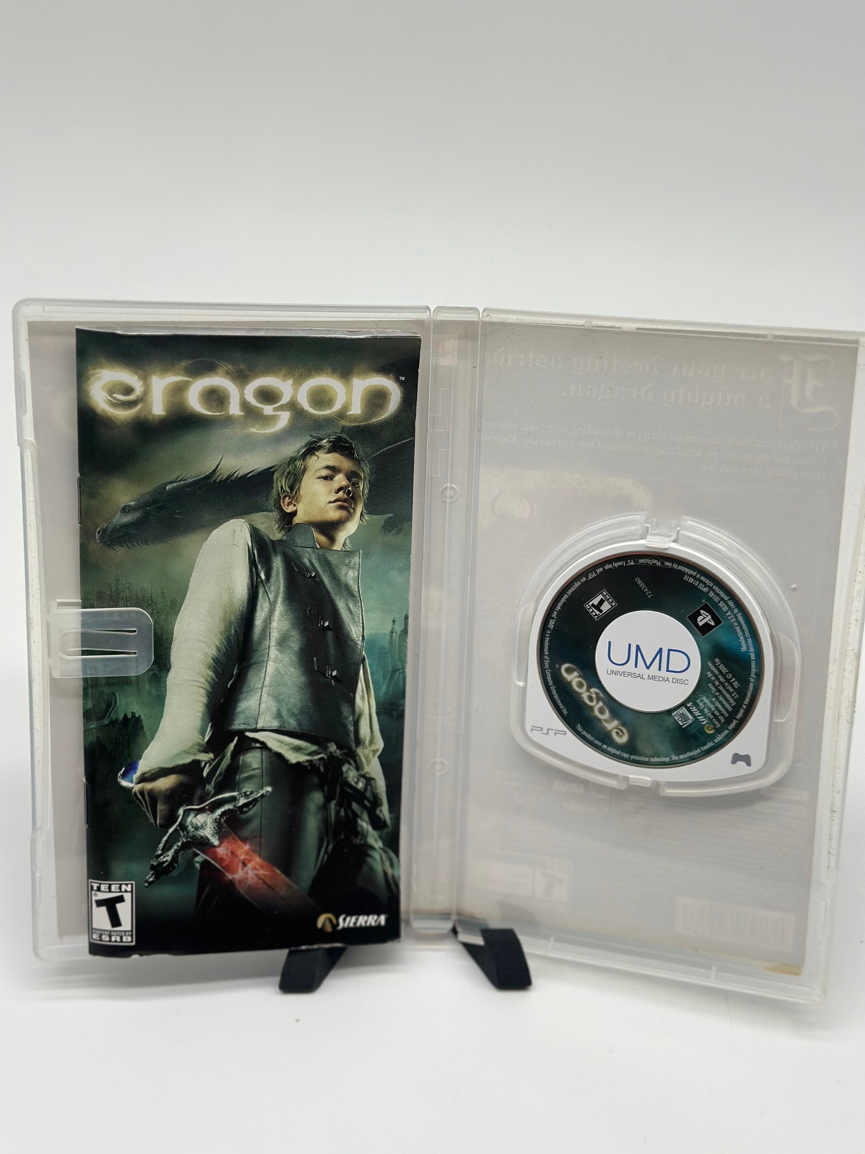 The PSP version of Eragon is an action-adventure game where players take on the role of Eragon and his dragon Saphira, experiencing the story from the film. The game features aerial combat, dragon riding, and multiplayer options, allowing players to ride Saphira and blast enemies with fireballs. Players can also participate in dragon-on-dragon combat, use magic spells, and experience the world of Eragon.