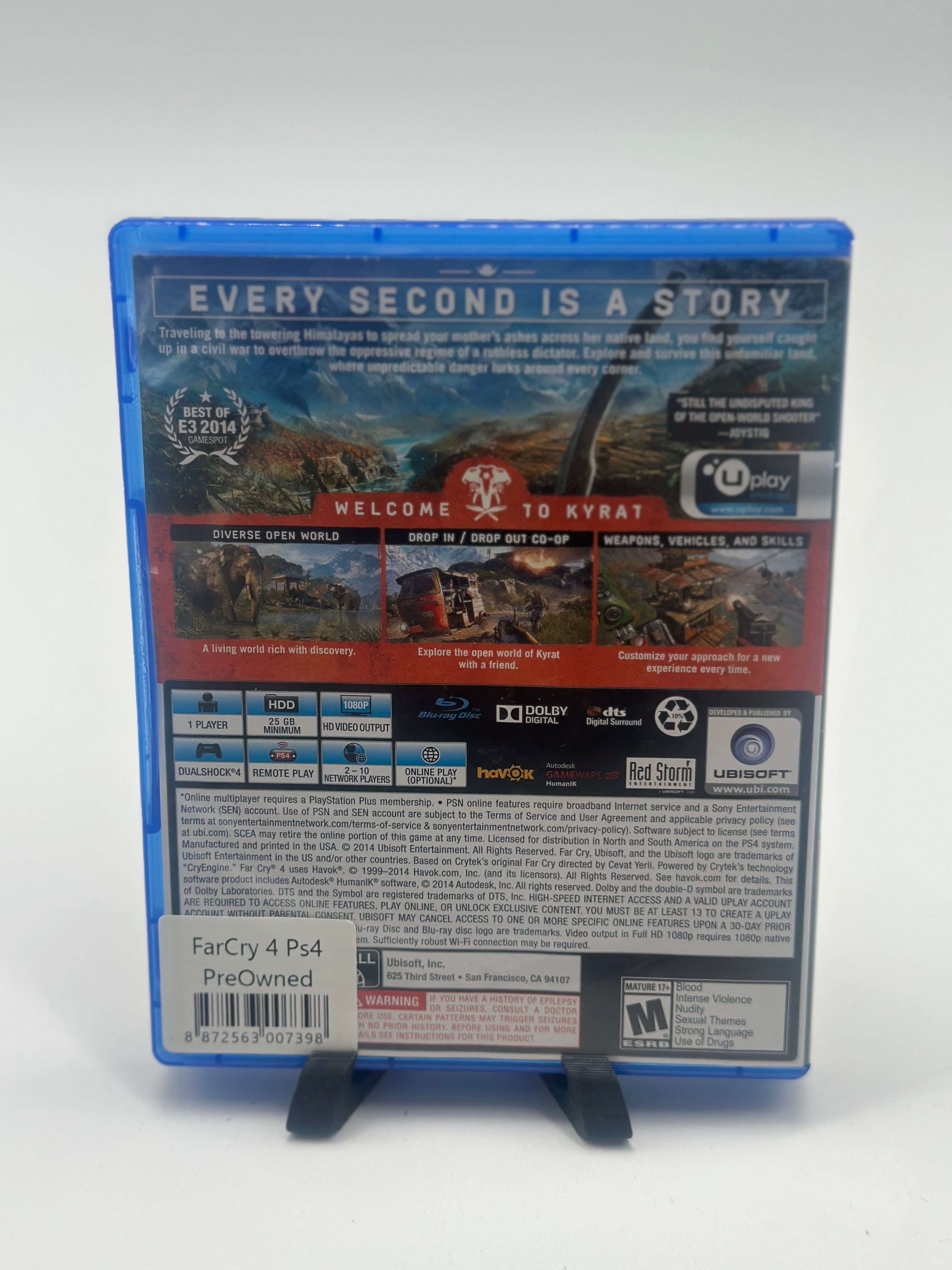 In Far Cry 4, players find themselves in Kyrat, a breathtaking, perilous and wild region of the Himalayas struggling under the regime of a despotic self-appointed king. Using a vast array of weapons, vehicles, and animals, players will write their own story across an exotic open-world landscape.
