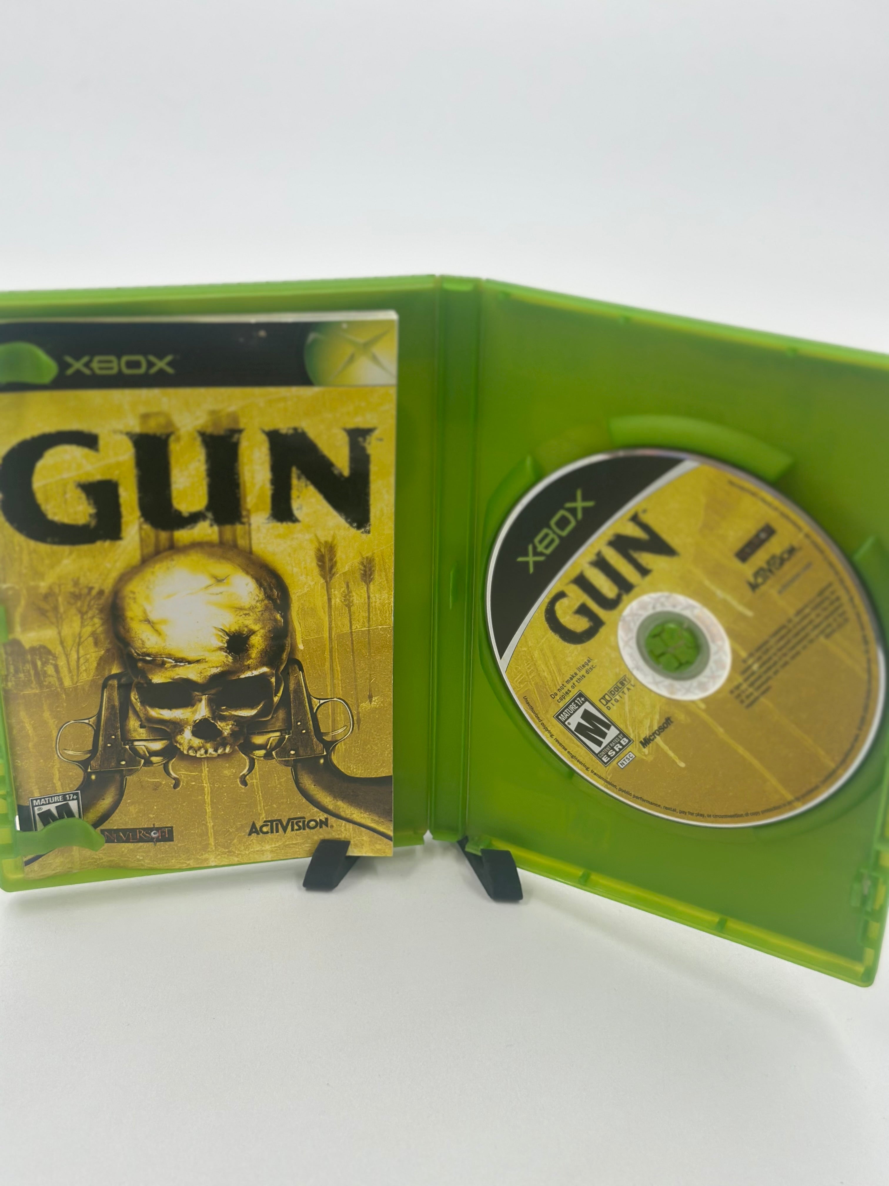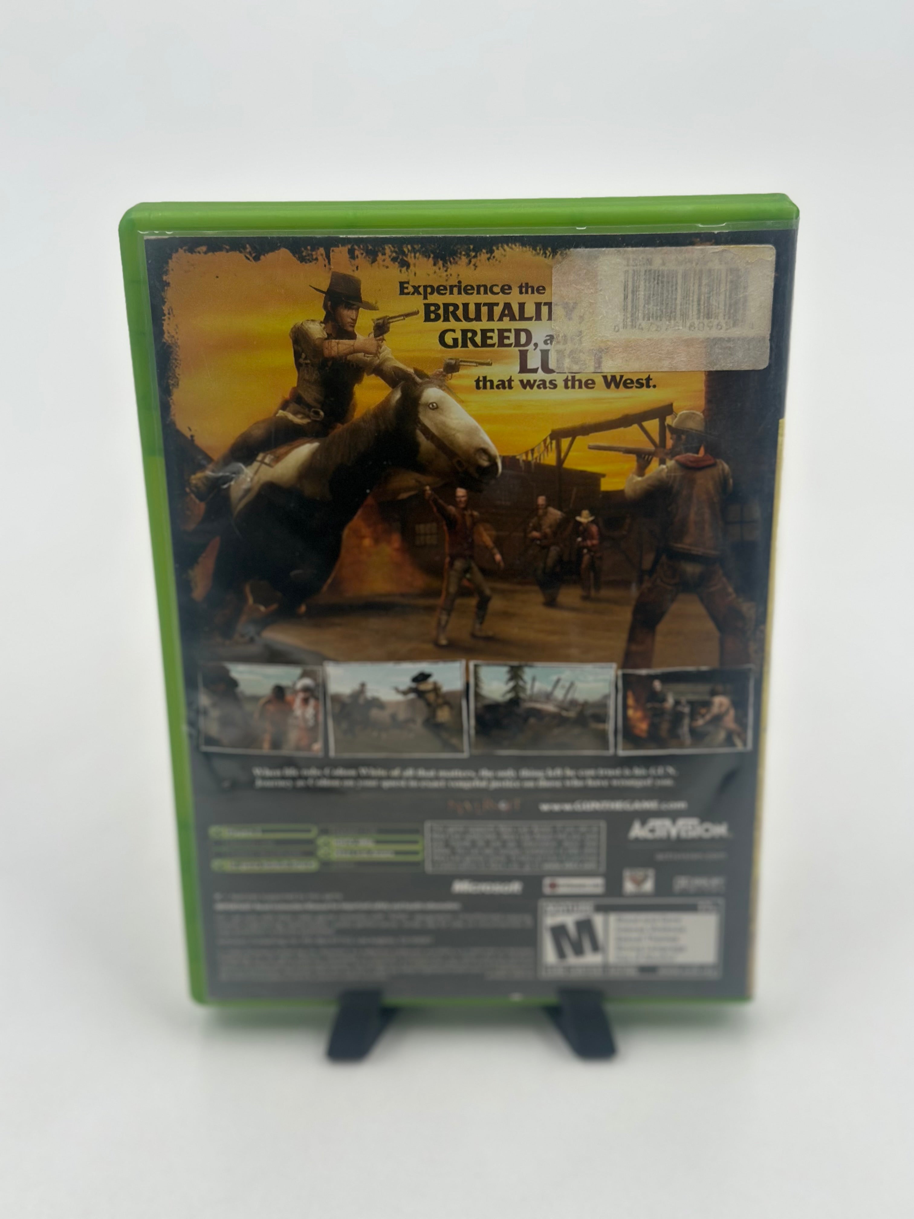 Gun for Xbox is a gritty, open-world Western action-adventure game where you play as Colton White, seeking revenge in the lawless late 1800s frontier, featuring realistic gunfights, horseback action, hunting, poker, and missions against corrupt lawmen, outlaws, and Native American tribes, allowing for both heroic and villainous actions in a world with reputation mechanics. Developed by Neversoft, it offers deep gameplay with authentic weapons, skill upgrades, and a story from screenwriter Randall Jahnson, featuring voice acting from stars like Thomas Jane and Ron Perlman.