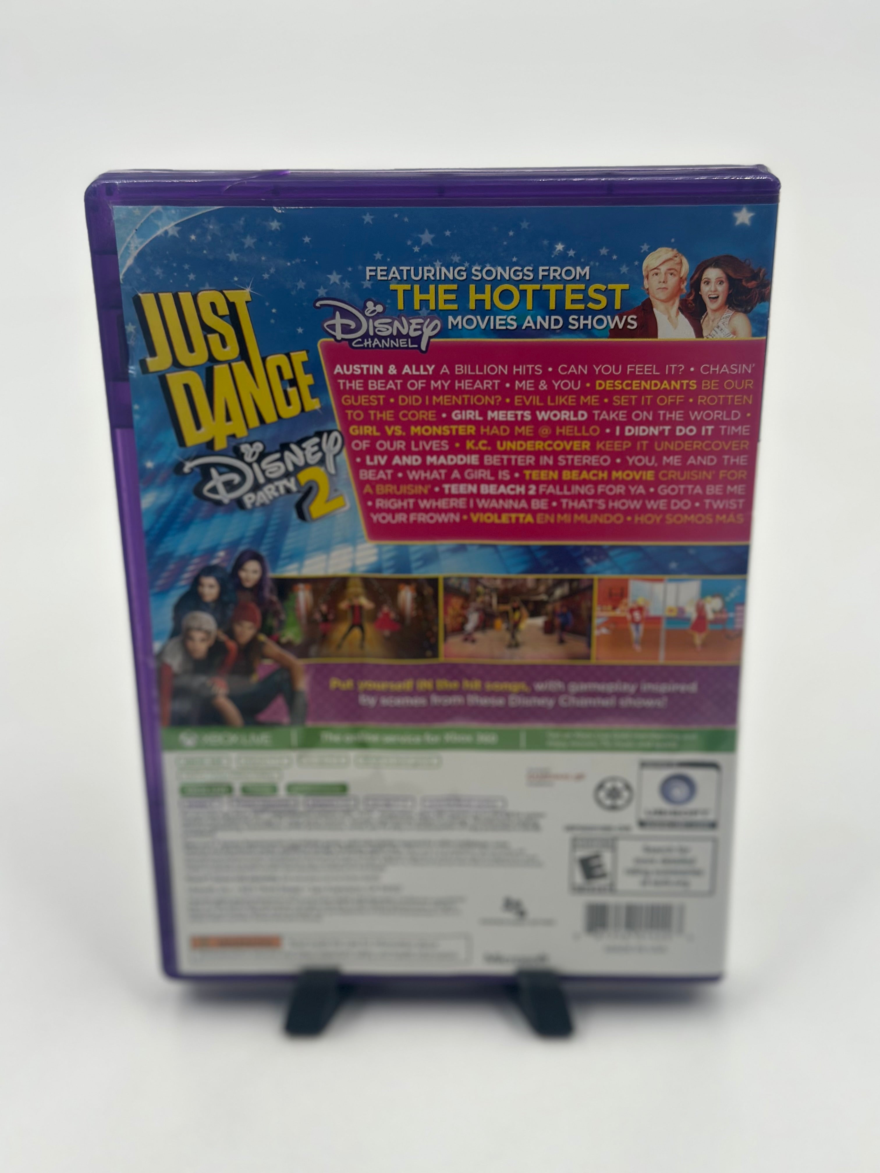 Just Dance: Disney Party 2 is a 2015 music and dance video game for the Xbox 360, published by Ubisoft. It features songs and characters from popular Disney Channel shows and movies, with dance routines, costumes, and set designs that match the source material. The game is rated E for Everyone and includes single-player and multiplayer modes, parent-friendly features like custom playlists, and a karaoke option.