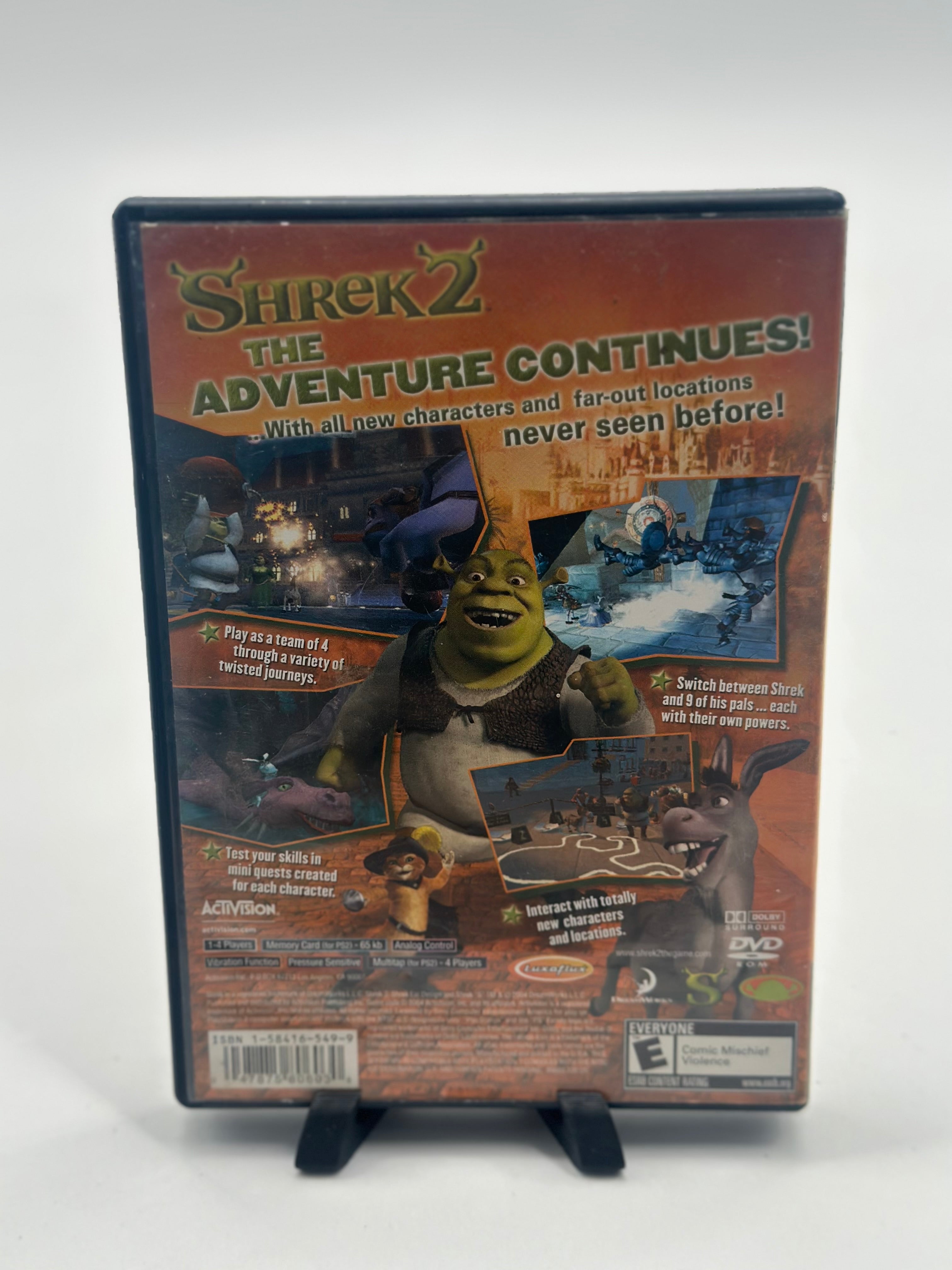 Shrek 2 takes players on a twisted fairy tale adventure with Shrek and his buddies. Revisit key locations from the movie sequel while discovering all-new locations and characters. Shrek 2 combines squad-based action with traditional action adventure elements.