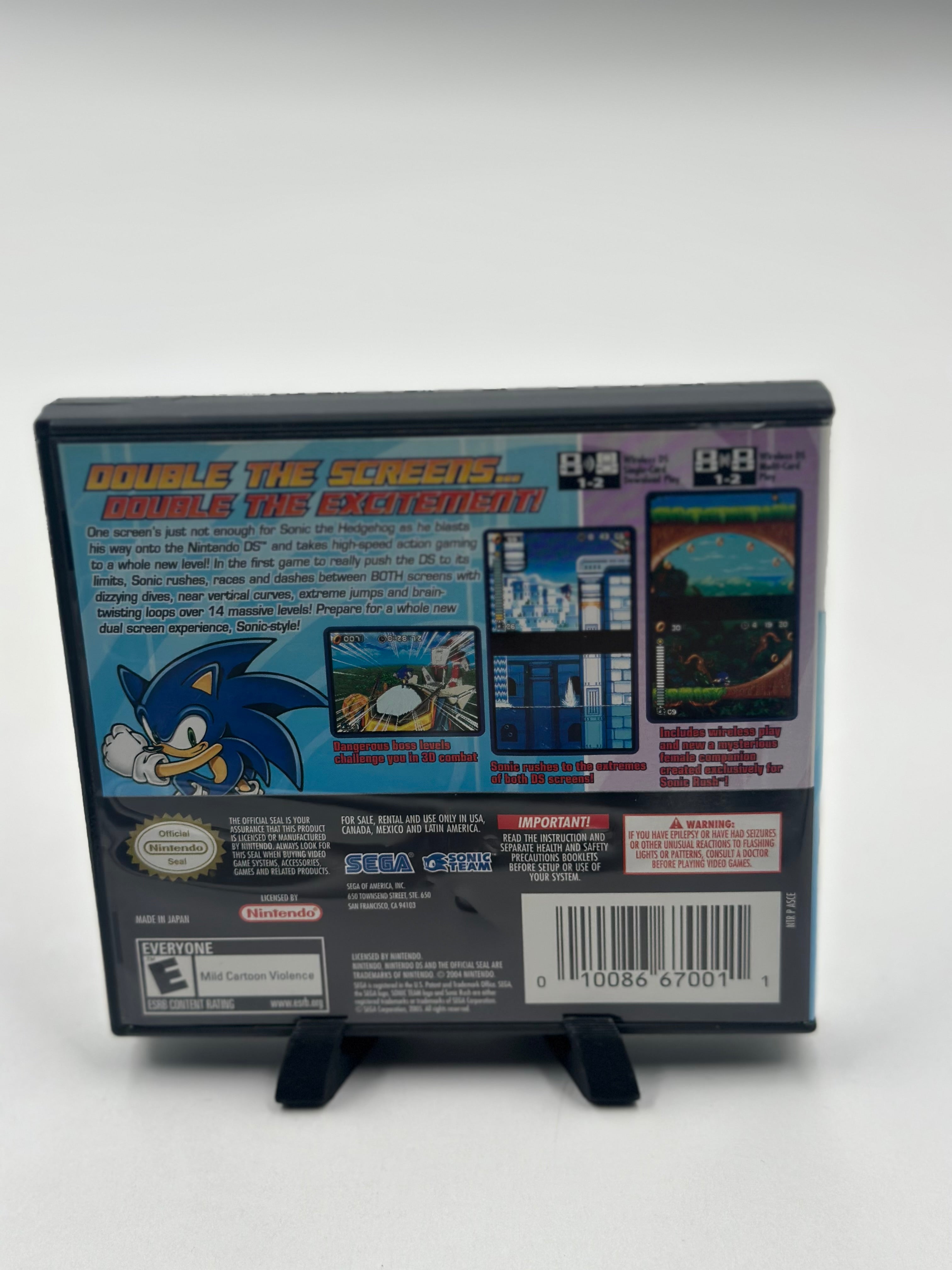 Sonic the Hedgehog has a new partner, Blaze the Cat, in this fast-paced platformer, Sonic Rush. You can play as either Sonic or Blaze as you try to track down powerful Sol emeralds. Sonic Rush displays the level over both screens, allowing for screen-spanning jumps and dives.