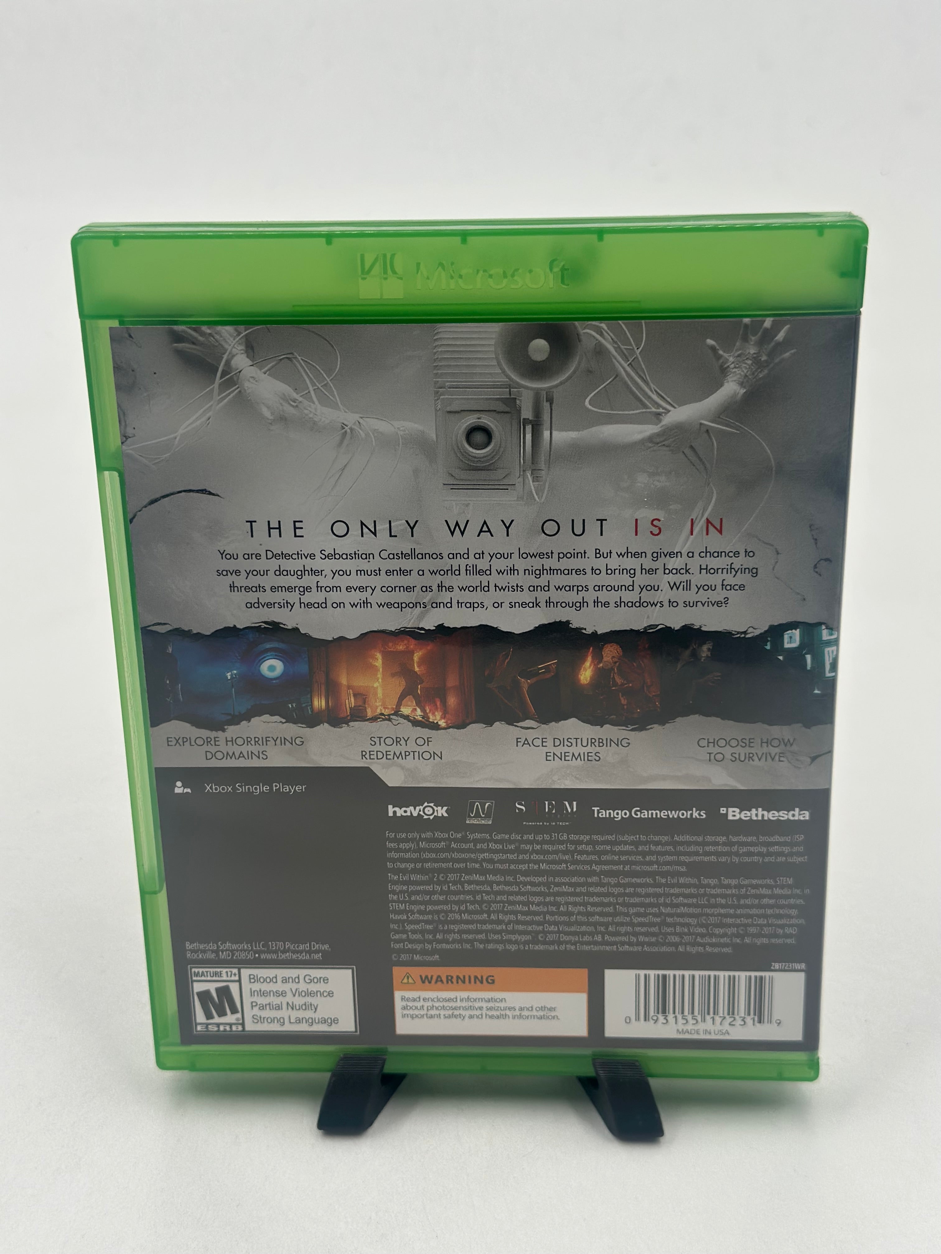 The Evil Within 2 for Xbox One is a third-person survival horror game where Detective Sebastian Castellanos descends into a twisted, nightmarish world (STEM) to save his daughter, Lily. Featuring a mix of linear horror and open-world exploration, players must use stealth, craft items, and manage scarce resources to survive against horrifying creatures in the town of Union.