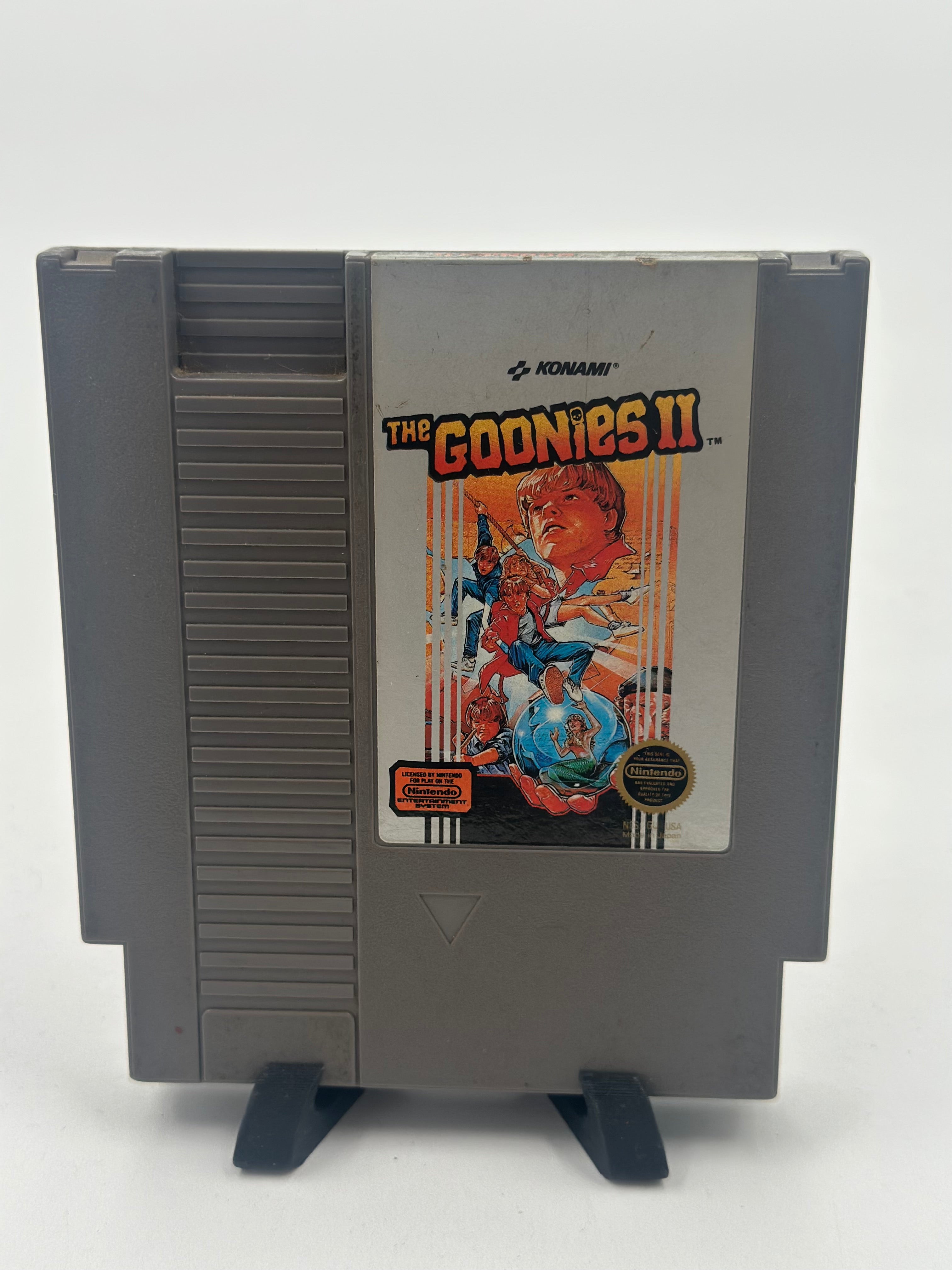 The Goonies II is considered an early example of a Exploration platform game, with open level design similar to Pitfall II: Lost Caverns and Castlevania II. The game features two modes of play: platform and first-person. Most of the game is played as the former as the player works through a non-linear map.