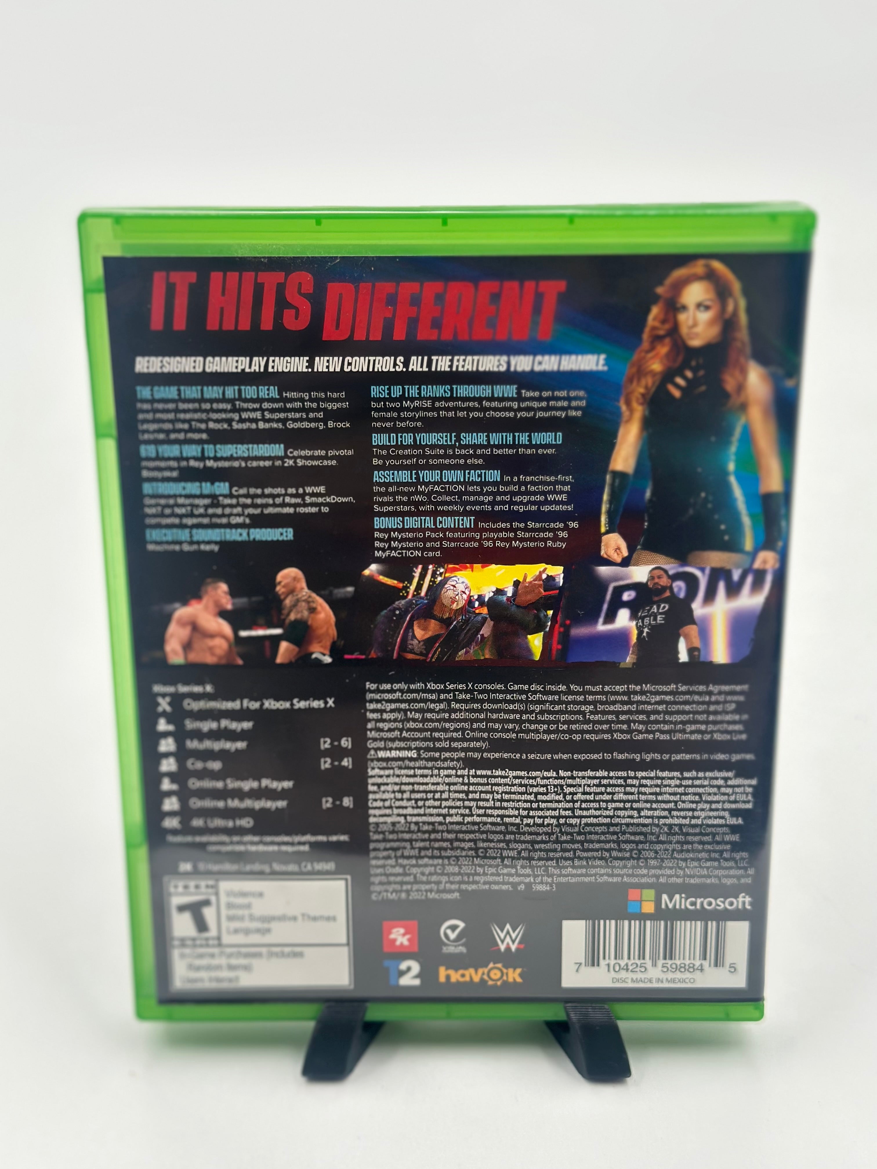 WWE 2K22 on Xbox Series X features a redesigned gameplay engine with new controls and realistic graphics, offering a complete WWE experience with various modes like MyGM, where you manage a brand, and MyFACTION, a card-based faction builder. Players can relive iconic moments in the 2K Showcase mode, featuring cover star Rey Mysterio, or create their own legend in the MyRISE story mode. The game also includes the sandbox-style Universe mode, offering extensive control over the WWE landscape, along with extensive customization options for created superstars.